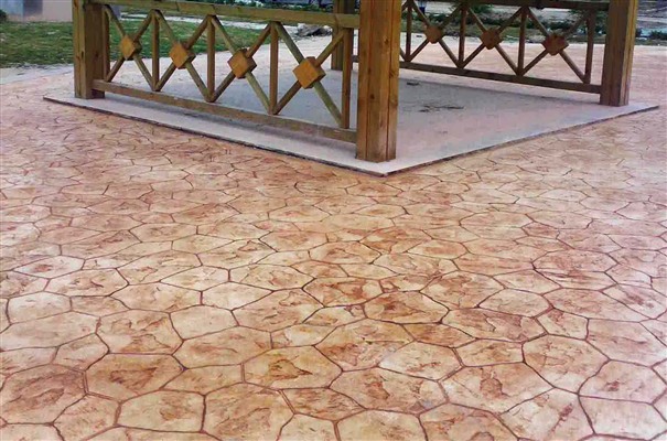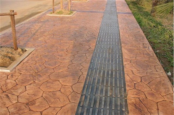 藝術壓花地坪利用模具可以制成不同圖案紋理,地坪整體平整,但這些圖案紋理卻是凹凸立體的,增加了地面的防滑性能,有利于雨天行人車輛的行走。