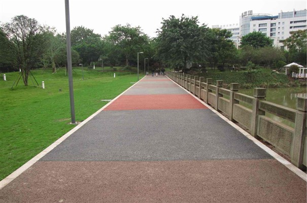 (7)可以利用透水混凝土的多色彩等功能可以結合周圍的環境可以做出和相配的顏色和圖形。